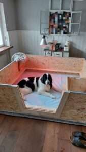…die Vorbereitungen laufen auf Hochtouren, ein Teil des Wohnzimmers wird zum Welpenzimmer mit Wurfkiste umgebaut. Wir freuen uns schon riesig auf die Kleinen.